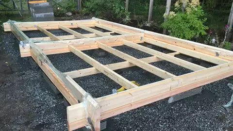 Når fundamentet er klargjort og soklene er på plass, kan du begynne å montere badstukabinen.
