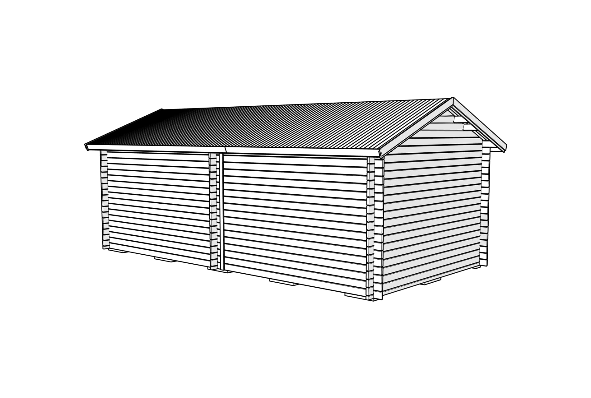 Ønsker du å kunne plassere både vinduer og dører hvor som helst, er våre tette grunnmodeller et godt alternativ. Denne hytten er delt inn i to rom på 15 kvadratmeter hver. Vi leverer dette byggesettet med tette vegger (også innervegg), som gjør at du selv kan velge plassering for dør og vinduer og sage hullene til disse. Med dette byggesettet kan du selv velge størrelse på vinduene dine og om du vil ha noen vinduer satt sammen eller ikke.
