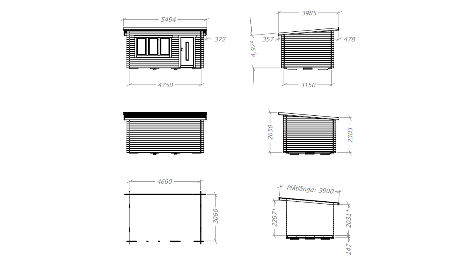 Stugan levereras som byggsats och kommer normalt i 2st virkespaket samt 1st ytterdörr i kartong, fönster som ingår packas normalt in i virkespaketen. Vikt totalt ca: 1400kg (per kolli: 1000kg / 350kg / 50kg)