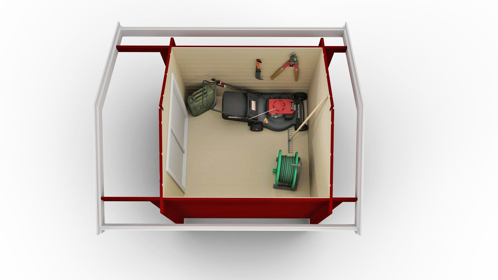Ikke la deg lure av størrelsen. Vår "lille" bod Kallen gir god plass og har en innvendig oppbevaringsplass på 200,2 cm x 200,2 cm. Bod Kallen 4 kvm tilbyr en praktisk og allsidig oppbevaringsplass og den firkantede plassen passer de fleste behov. Denne redskapsboden kommer med et par dører (130cm x 190cm) som gjør det mulig å enkelt oppbevare bredere hagemaskiner. Konstruksjonen er laget av slitesterkt 34x145 mm knutevirke, som sikrer et robust og stabilt bygg.