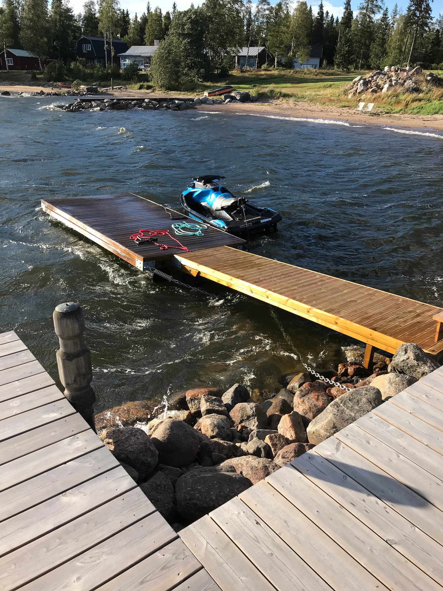 Brygga 4 m × 2 m , landgång 4,2 m x 1m × 30 cm över vatten