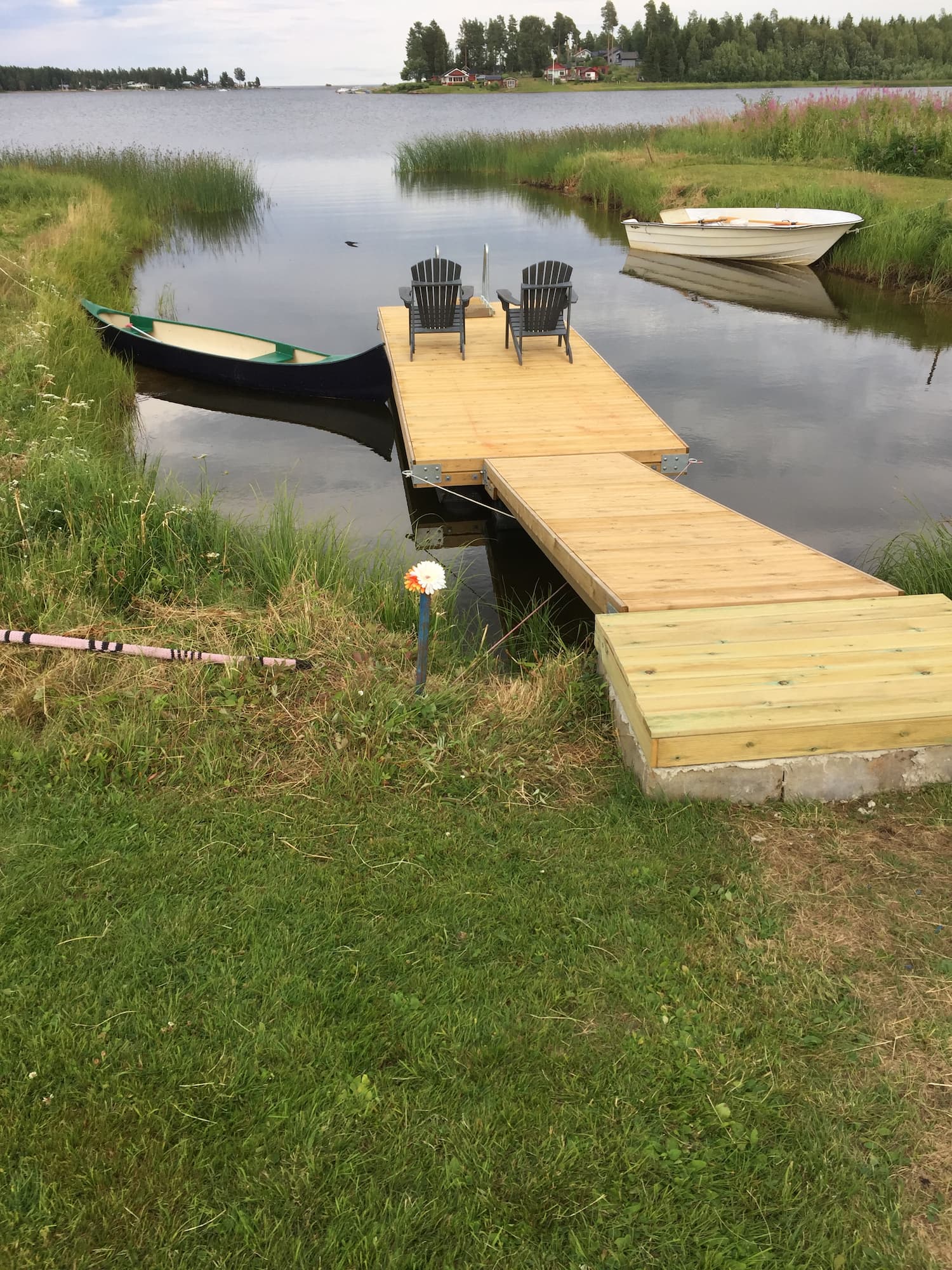 Brygga 6 m × 2 m , landgång 4,2 m x 1m × 30 cm över vatten