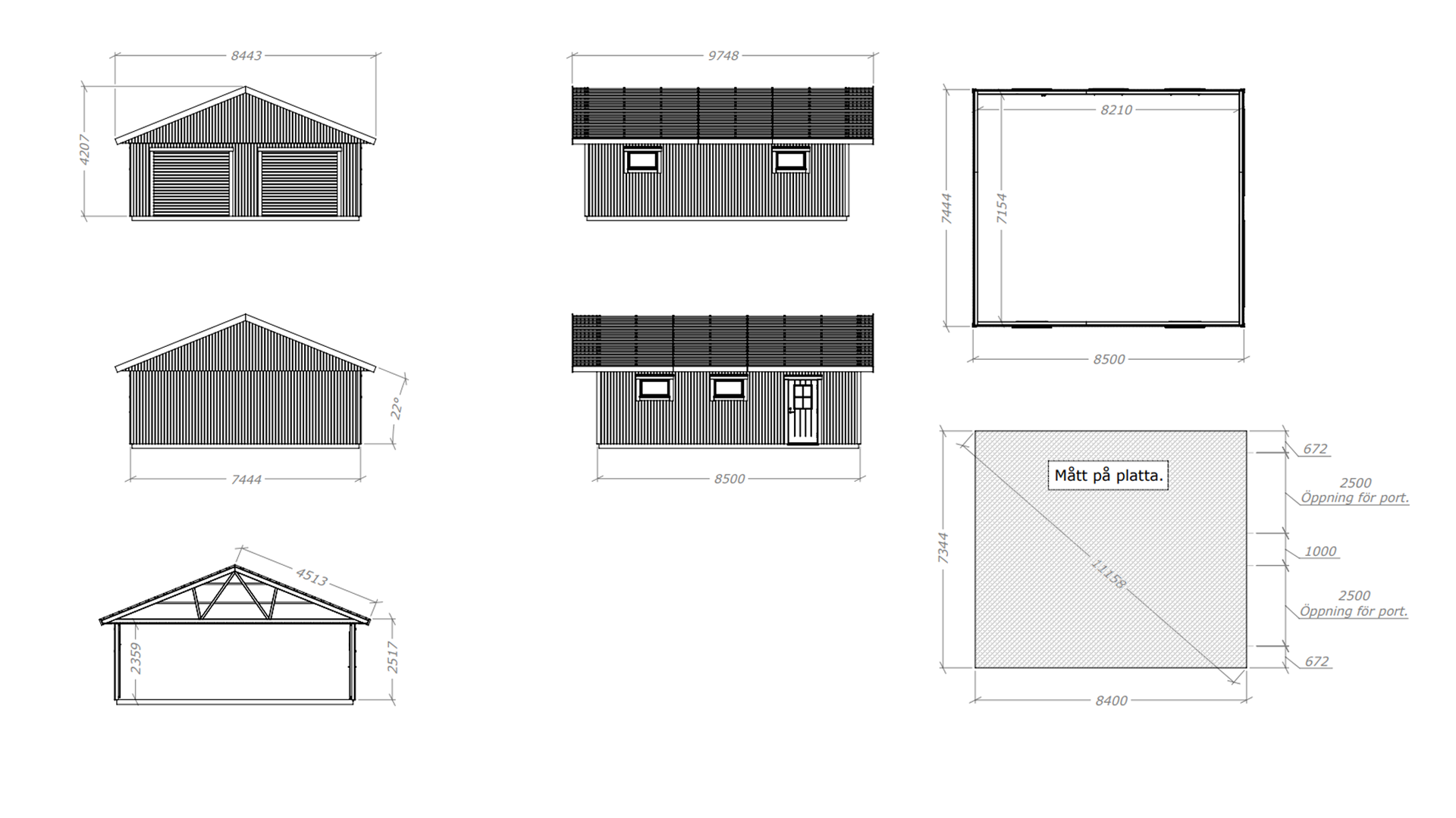 Färdiga takstolar cc1200 anpassade standard efter snözon 4,5. Underlagstak med 45x95mm rote, vindskivor och takfotsbrädor i 22x145 mm. Underspikning i 22x120 mm samt glespanel för invändig montering i 28x70 mm. (OBS! Krävs det högre snözonsklass kontakta oss!)