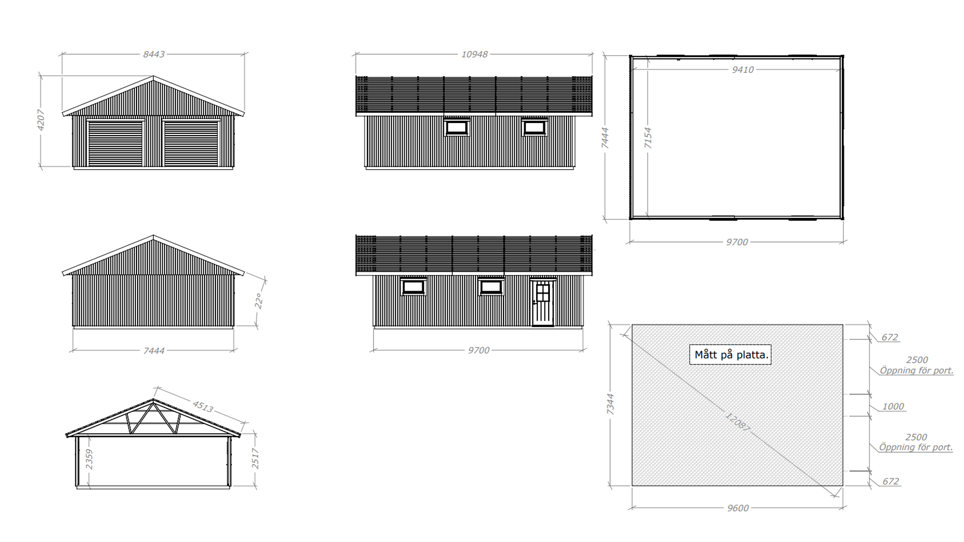 1 st 10x21 vitmålad med glas och spröjs. 2 st Garageport 25x21 (Takskjutport alt Slagport) pris varierar beroende på typ av port. (Garageportsmotor finns som tillbehör)