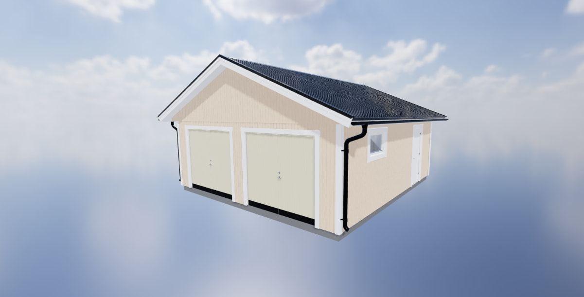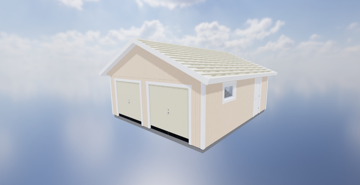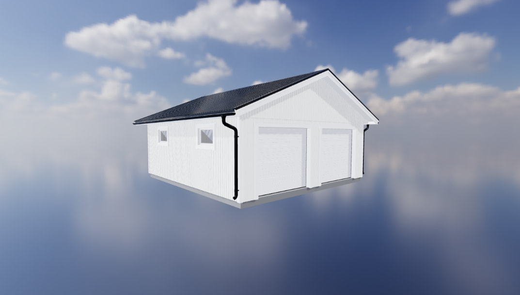 Vi har utarbeidet en garasjemodell på 50 kvadratmeter som har plass til to biler. Fullfør byggesettet i vår konfigurator etter dine ønsker og behov