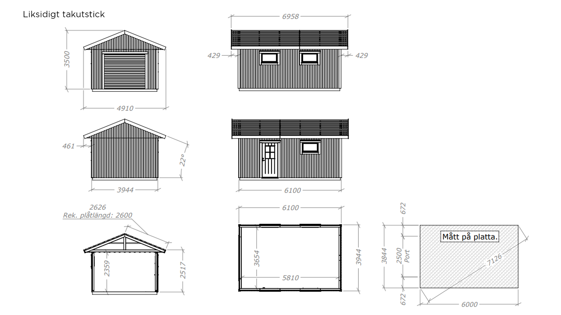 Våre byggesett for garasjer er i utgangspunktet uisolerte, men du kan enkelt legge til ønsket tilbehør til din valgte garasjemodell. Blant vårt tilbehør kan du også velge utvendig takbelegg og takvanningsanlegg i ønsket farge. Grunndesignet inkluderer en garasjedør, men du kan også velge å oppgradere til en skyvedør fra hörmann. Garasjeportmotorer er også tilgjengelig under tilbehør.