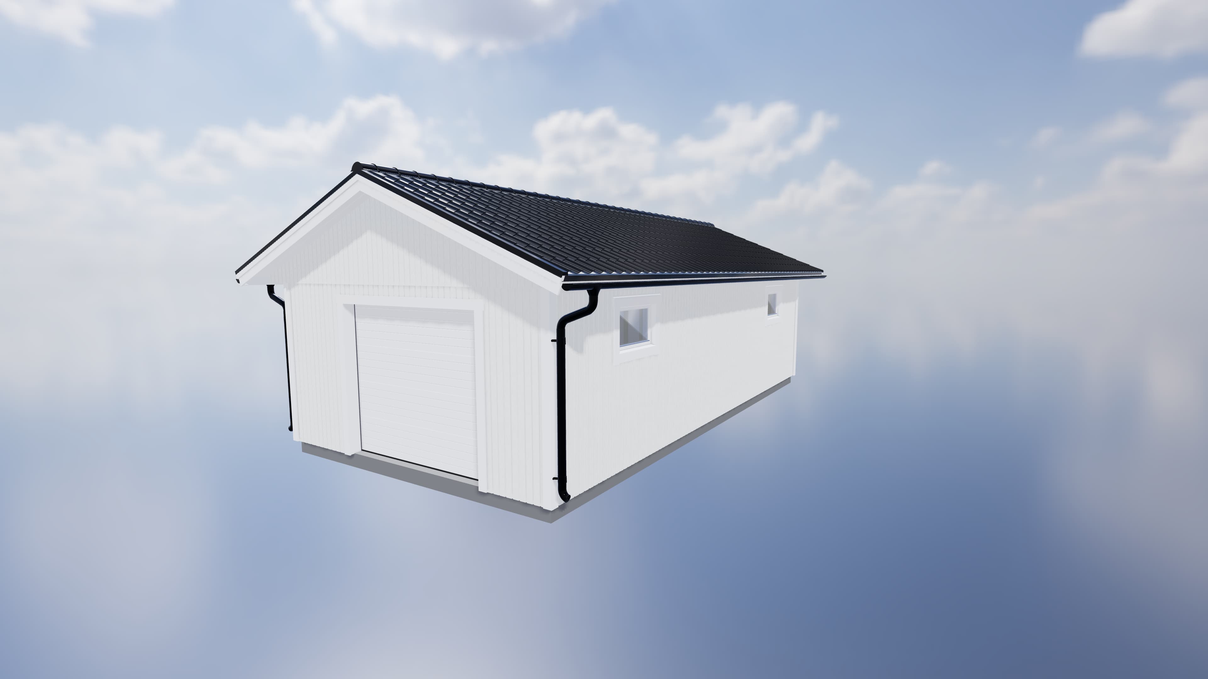 Vi har utarbeidet en romslig enkeltgarasje på 47 kvadratmeter med plass til en bil. Fullfør byggesettet i vår konfigurator etter dine ønsker og behov.