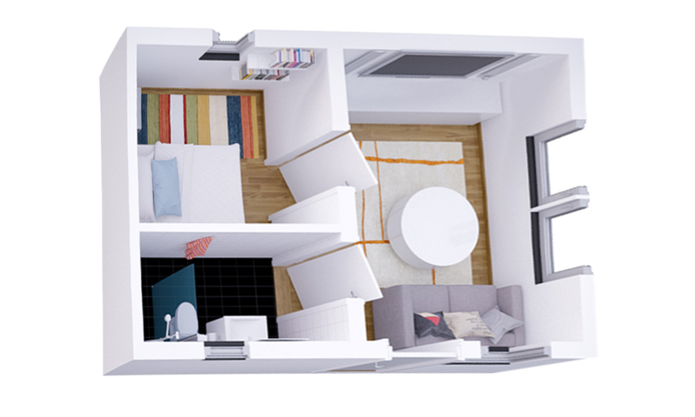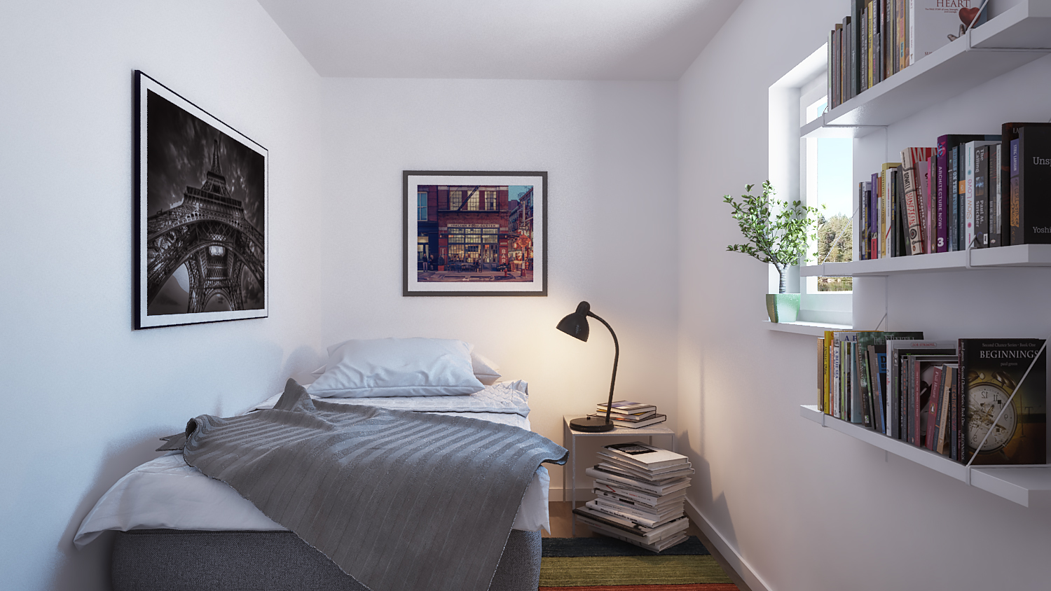 Er du på jakt etter en moderne hytte kan vi anbefale vår hytte med skråtak 24 kvm, som er perfekt som gjestehytte, hjemmekontor eller kanskje som barnas første eget hjem. Planløsningen er delt i to rom på 12 kvadratmeter hver, men kan enkelt tilpasses dersom man ønsker å få plass til bad eller kanskje gi mer plass til for eksempel kjøkken. Skillet mellom de to rommene er tett, noe som gjør at du vil kunne velge hvor inngangen mellom rommene skal være. Kanskje du velger å ha dør til både bad og soverom direkte fra allrommet eller du kan la inngangen til badet være direkte fra innsiden av soverommet.