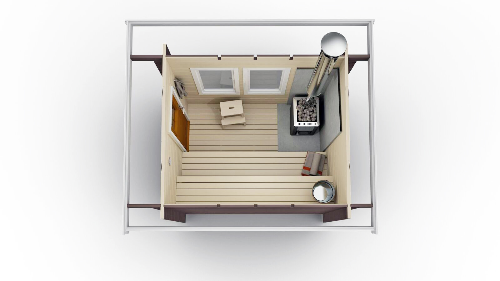 Vår badstuhytte 5 kvm er, til tross for sin kompakte størrelse, en meget romslig badstue.