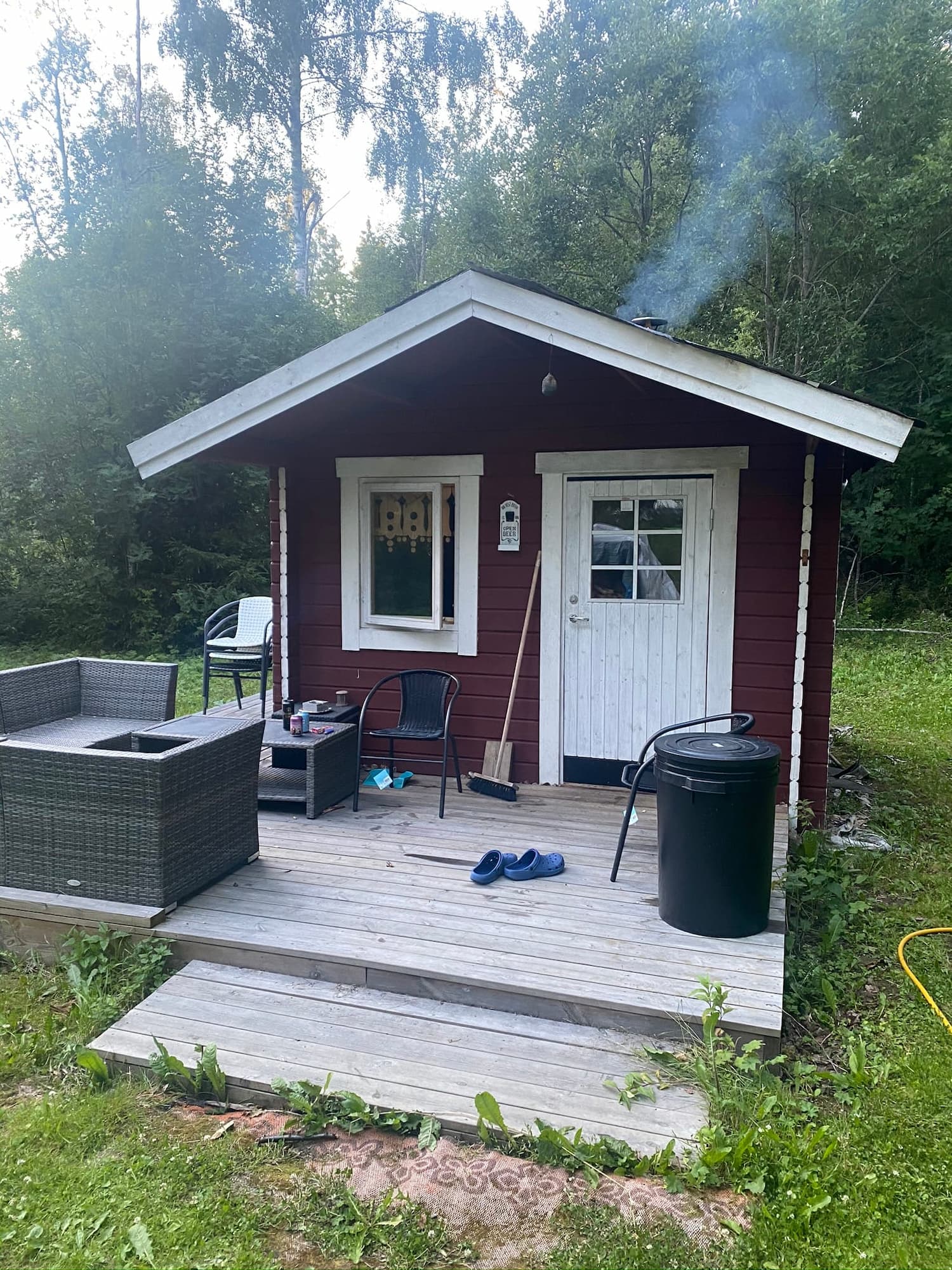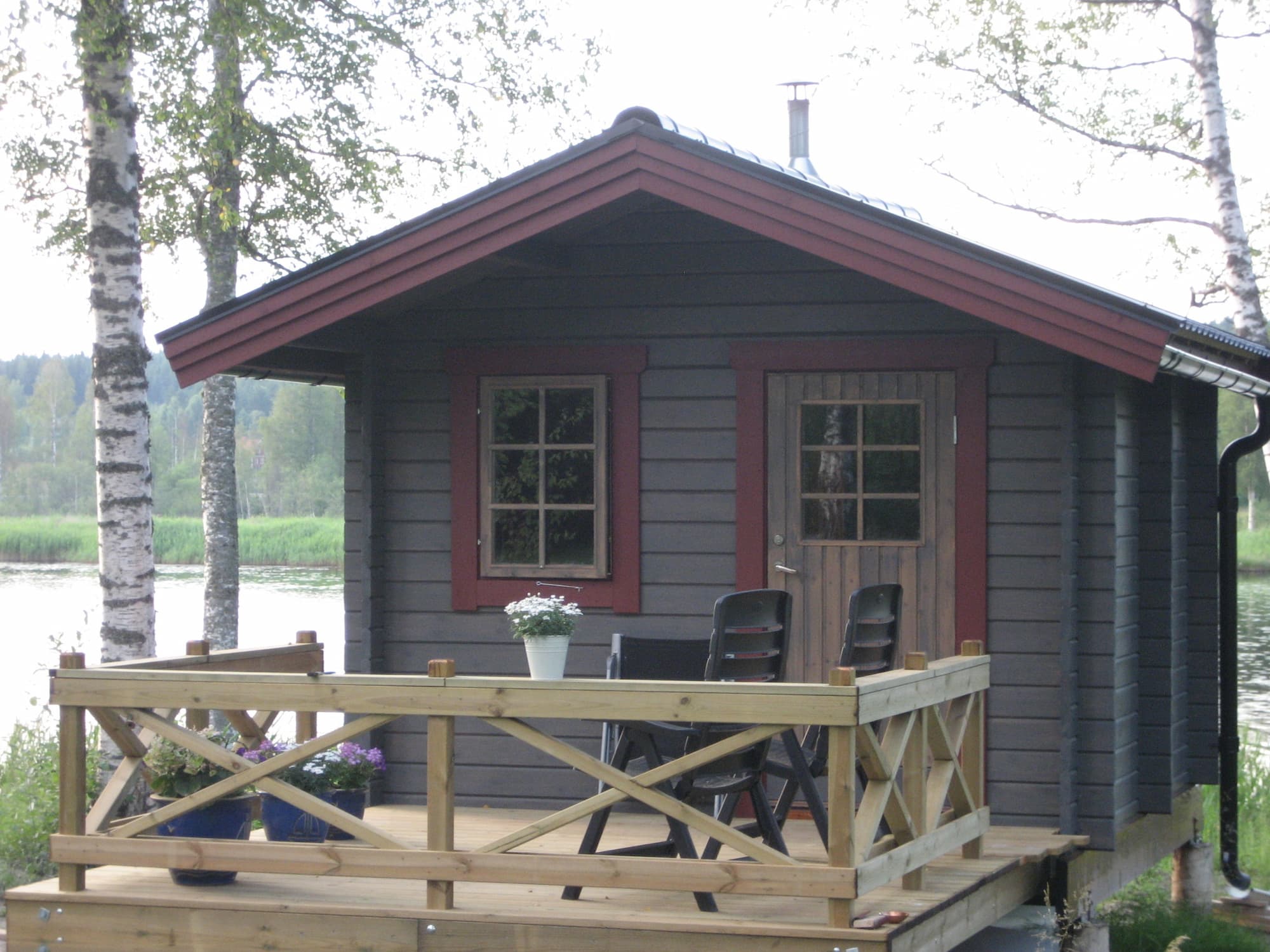 Harvia Kaminpaket (finns som tillbehör) Yttre takbeklädnad (takshingelpaket finns som tillbehör) Handtag och låscylinder (finns som tillbehör) Spröjs till fönster (finns som tillbehör) Skruvsats (finns som tillbehör) Veranda (finns som tillbehör)