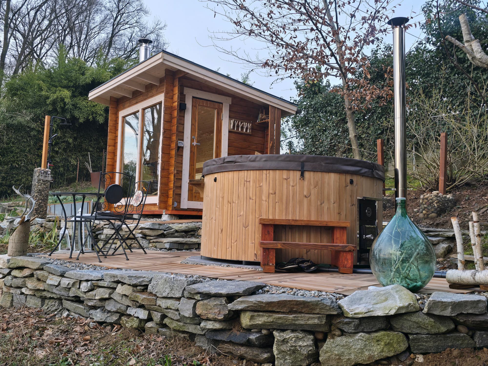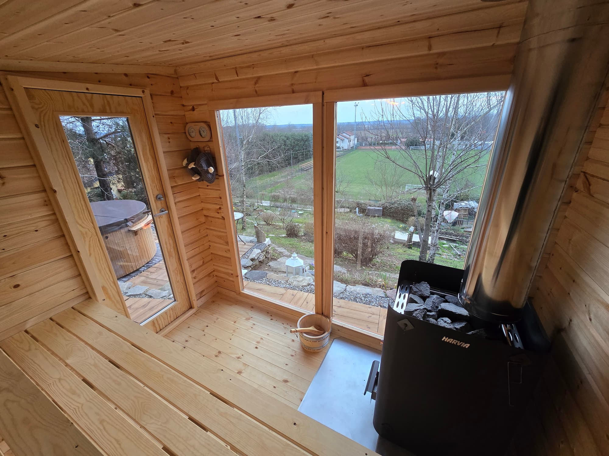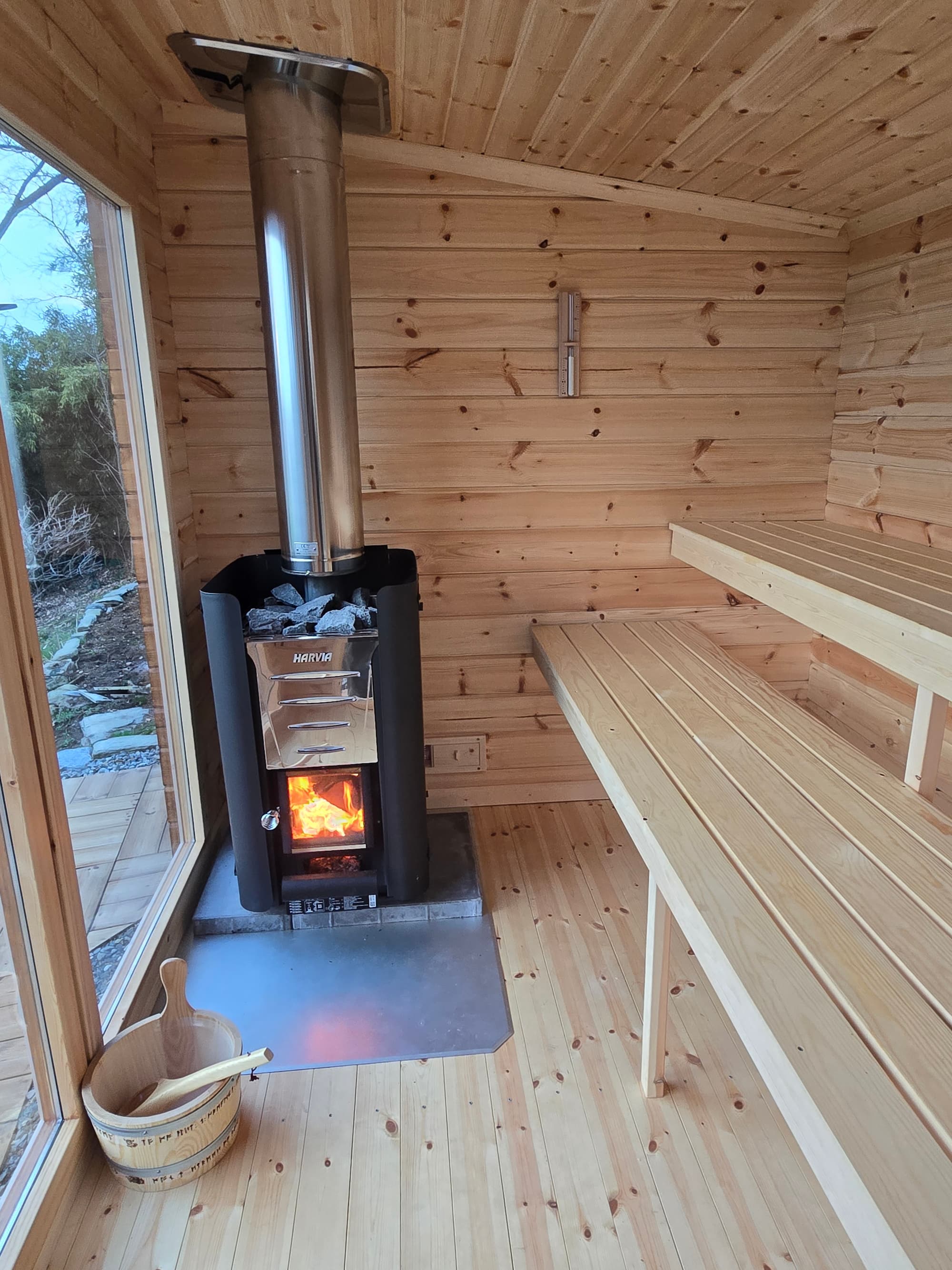 Badstuen på 5 kvadratmeter har plass til 4-6 personer, noe som ofte er greit å tråkle sammen med venner og familie. De to medfølgende badstubenkene er plassert på ulike nivåer og oppfyller badstuanbefalingen om at føttene ikke skal være lavere enn selve badstueenheten, dette for å unngå badstuebad med kalde føtter.