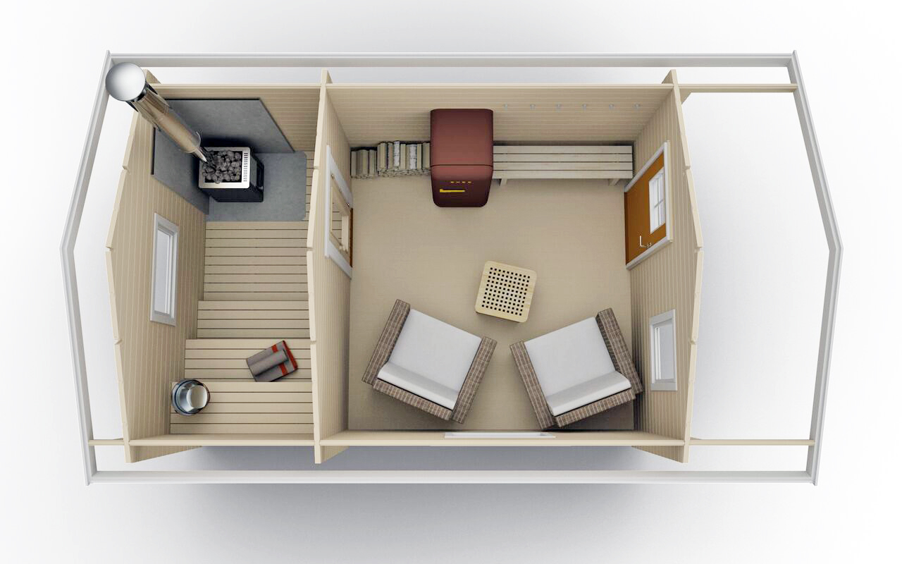 Badstuehytte tett grunnmodell 15 kvm - Stor badstue med relax