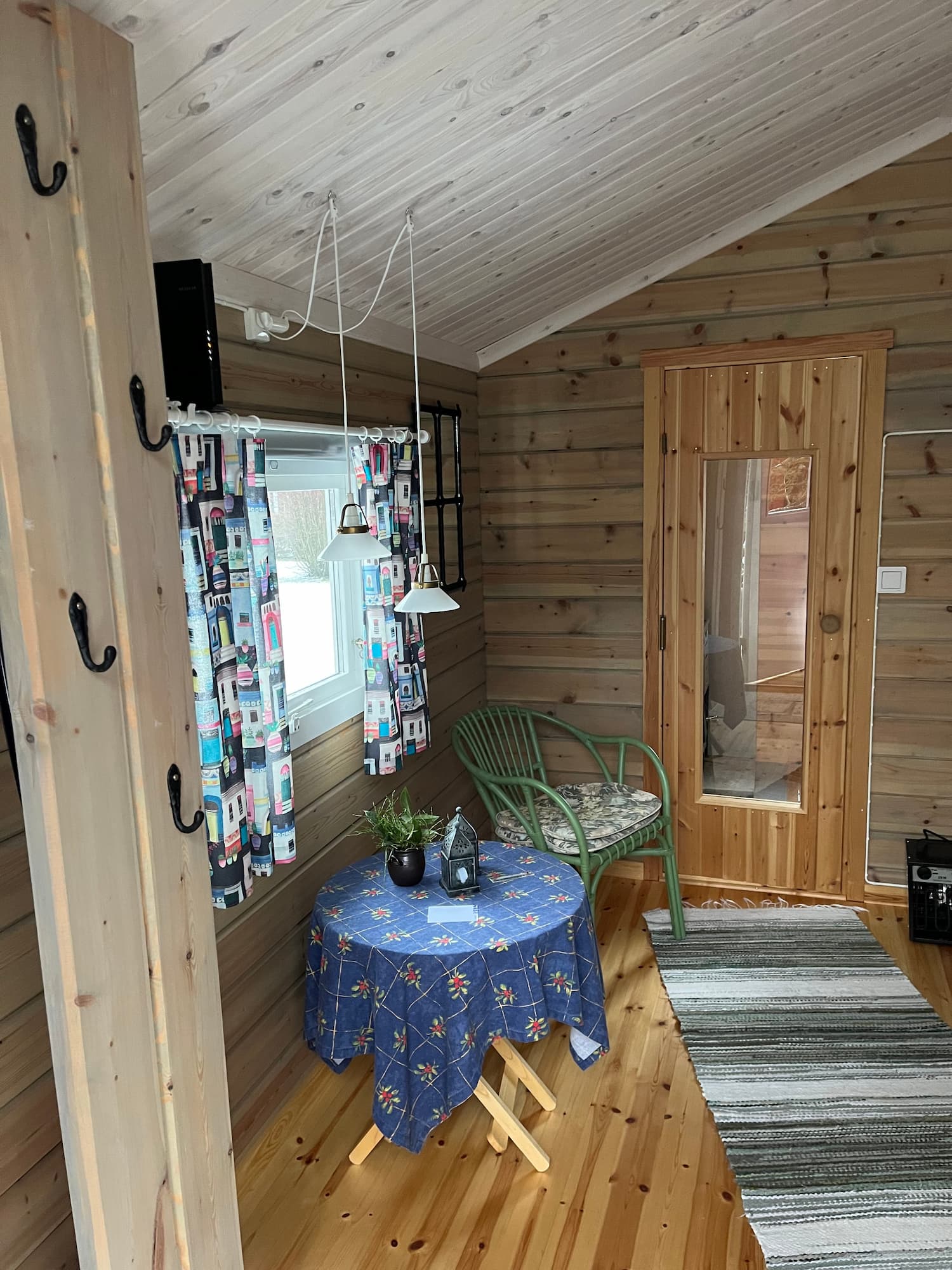 Harvia Kaminpaket (finns som tillbehör) Yttre takbeklädnad (takshingelpaket finns som tillbehör) Handtag och låscylinder (finns som tillbehör) Spröjs till fönster (finns som tillbehör) Skruvsats (finns som tillbehör) Veranda (finns som tillbehör)