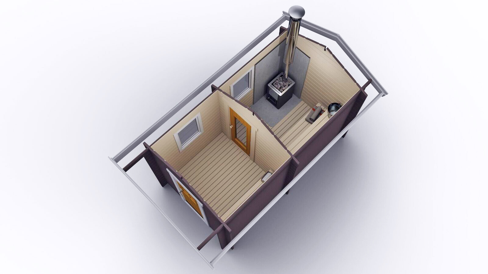 Flytende Badstue Næverøn 8x4,8m og Badstue BL 8 kvm
