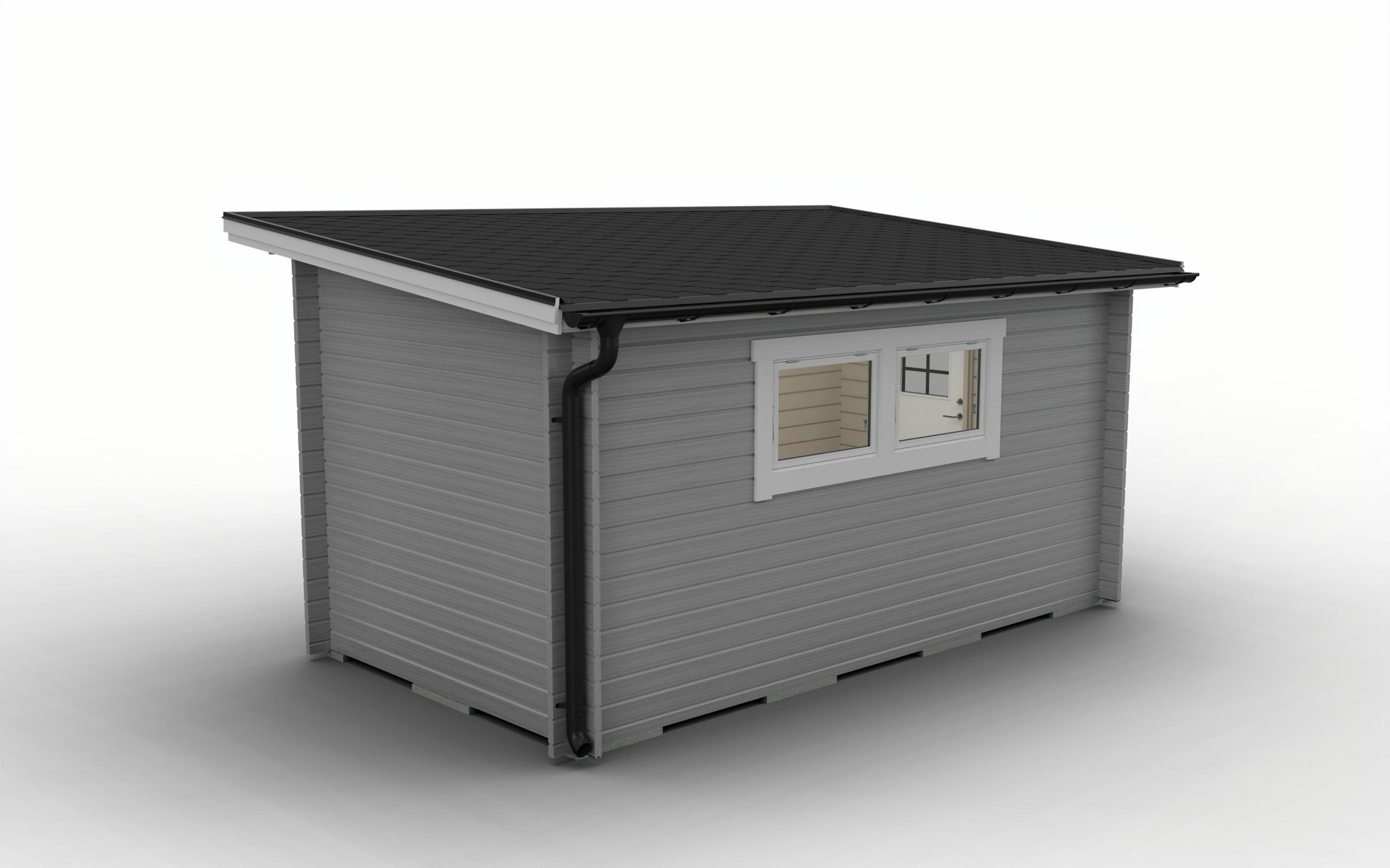 Stugan levereras som byggsats och kommer normalt i 2st virkespaket samt 1st ytterdörr i kartong, fönster som ingår packas normalt in i virkespaketen. Vikt totalt ca: 1310kg (per kolli: 950kg / 320kg / 40kg)