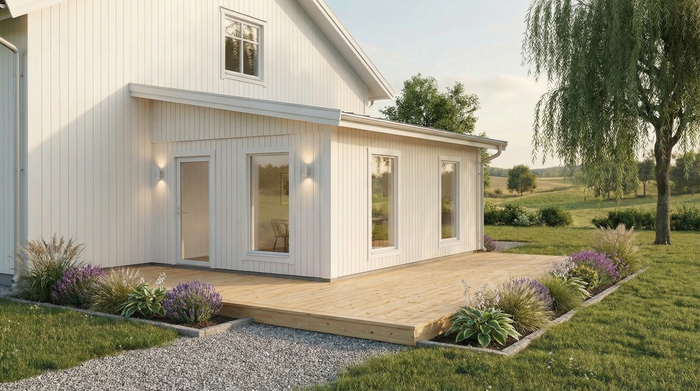 En utbyggnad av huset ger dig möjlighet att anpassa ditt boende efter livets förändringar. Det kan handla om ett större kök, ett extra sovrum eller mer plats för familjeliv. Med vår 3D-konfigurator kan du planera din husutbyggnad utifrån befintlig byggnad, taklutning och fasad – så att utbyggnaden smälter in naturligt med resten av huset.