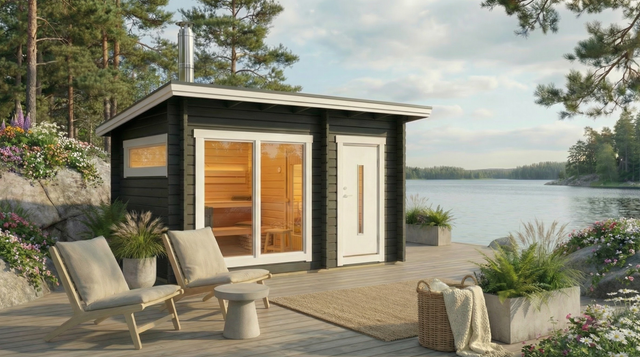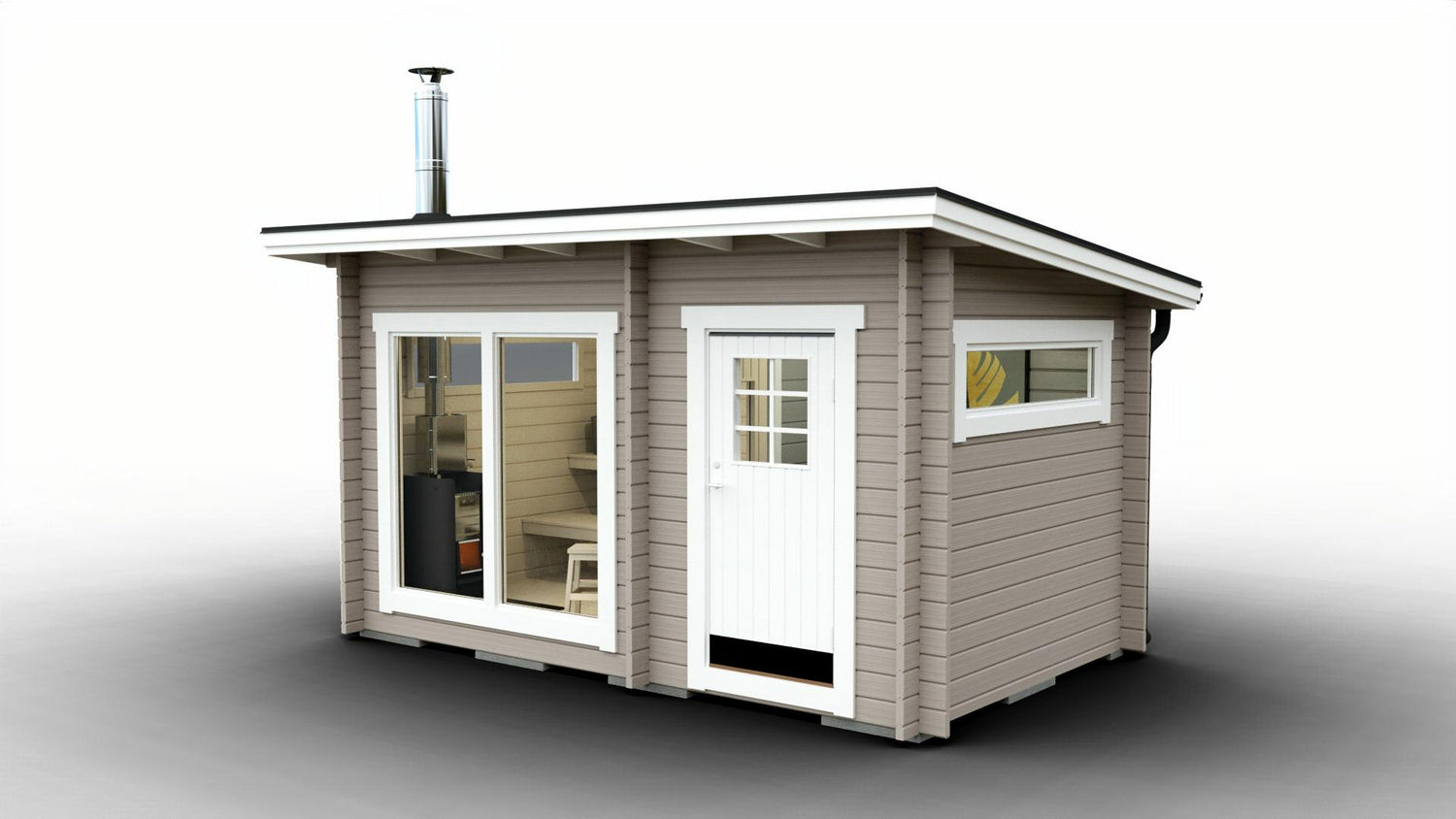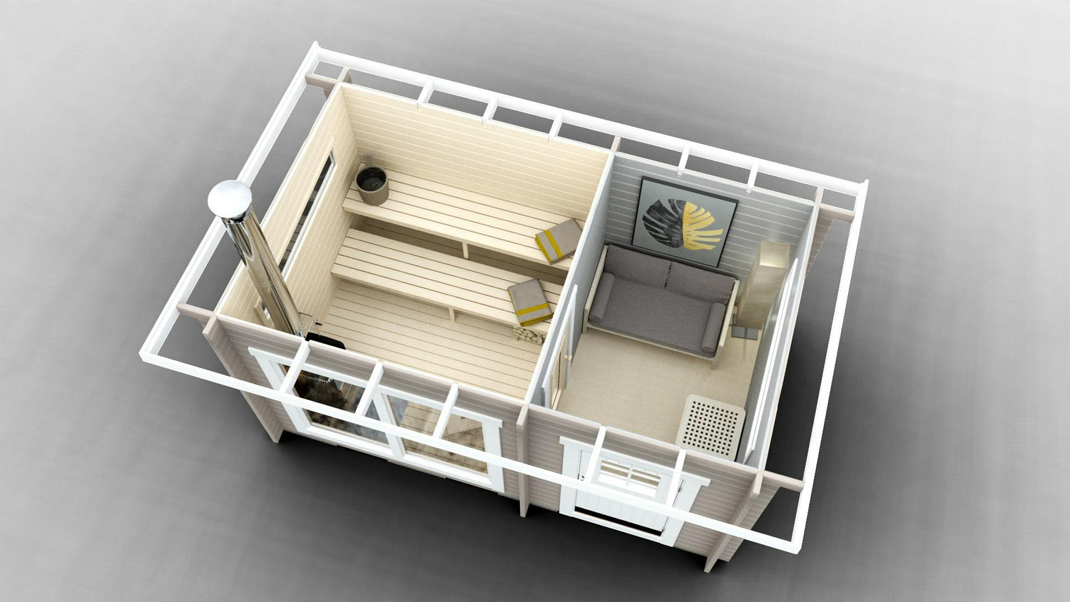 Komplett bastupaket på 11 kvm med rymlig bastudel och relax med stor fönster för optimal upplevelse. Paketet innehåller Premiumpaketet Harvia bastukamin 20 Pro med tillhörande skorsten i rostfritt utförande. Skruvpaket, handtag med lås och 40 kg bastusten ingår.